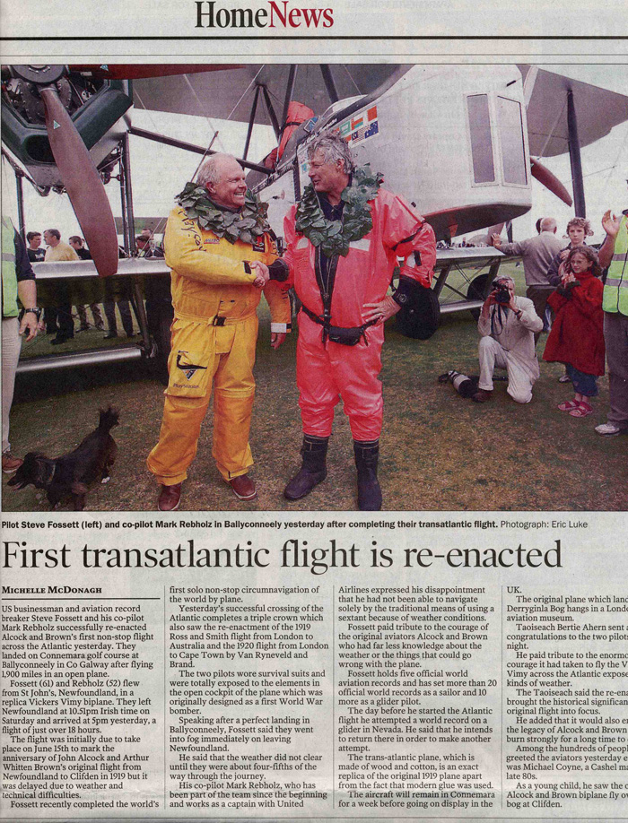 biplane in around 18 hours after taking off from St. John's, Newfoundalnd,