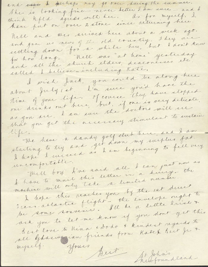 One of the letters carried across the Atlantic by the Vicker's Vimy flight.